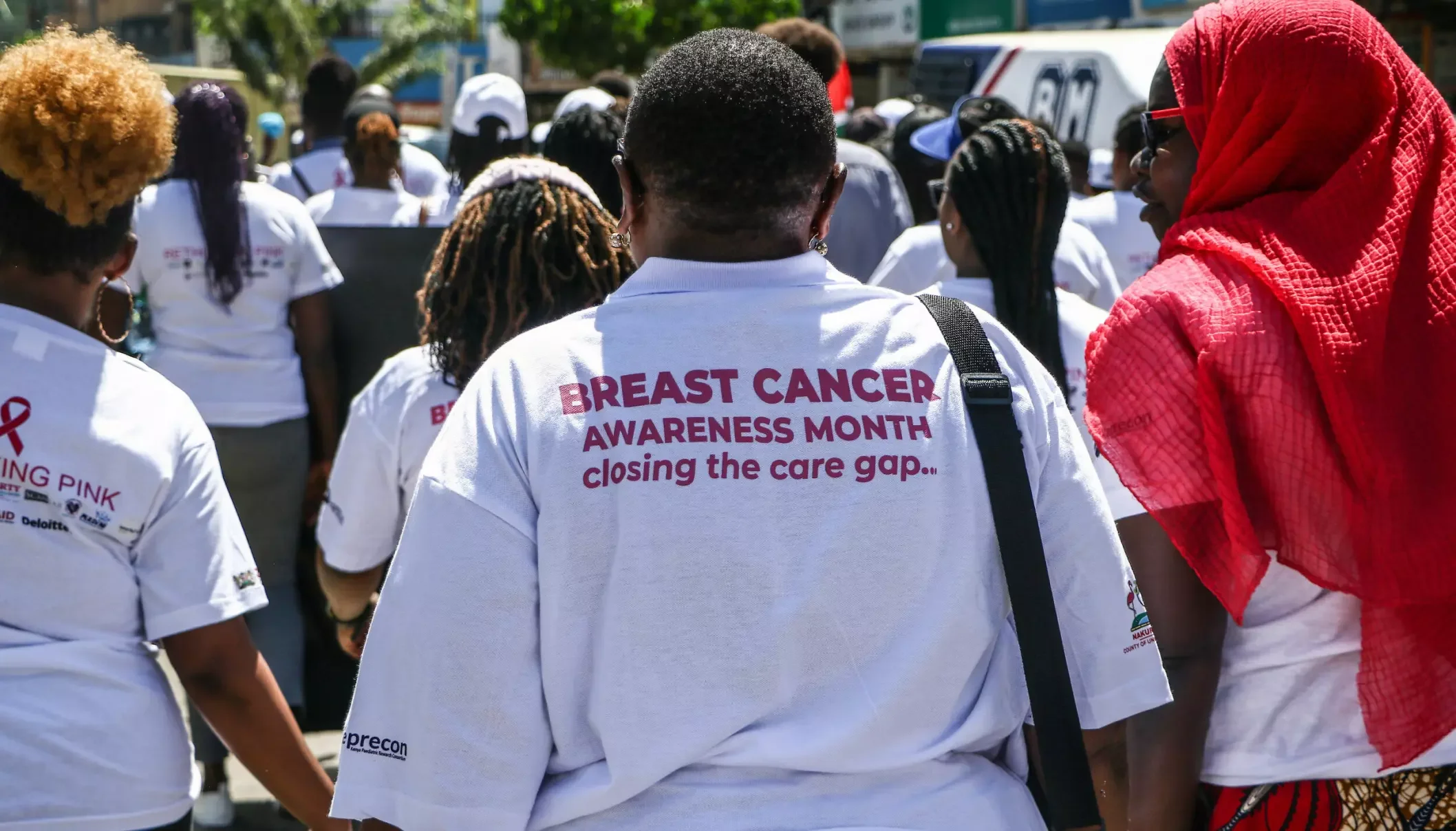 This is a picture taken in Nakuru Town, Kenya, where people came together to march through the streets to raise awareness about breast cancer in honor of World Cancer Awareness Month, also known as Pink October.